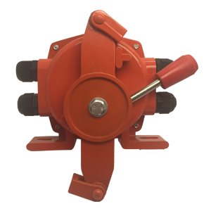 工作原理:當(dāng)膠帶運(yùn)輸現(xiàn)場發(fā)生緊急事故時,可拉動系在拉繩開關(guān)吊耳上的鋼絲繩,使機(jī)內(nèi)的滑塊控制內(nèi)部微動開關(guān)動作,發(fā)出停機(jī)和警報信號。手動復(fù)位機(jī)型在松開鋼絲繩后需操作復(fù)位手柄后方可復(fù)位。本機(jī)型手動復(fù)位。 。