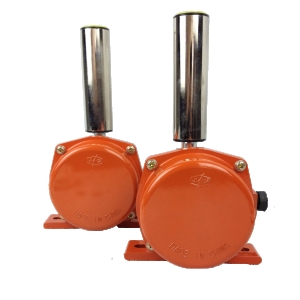 工作原理:當(dāng)輸送帶運(yùn)行中出現(xiàn)跑偏時(shí),輸送帶邊緣觸碰兩級(jí)跑偏開(kāi)關(guān)立輥并使立輥偏轉(zhuǎn),當(dāng)立輥偏轉(zhuǎn)角度達(dá)到1級(jí)開(kāi)關(guān)角度時(shí),開(kāi)關(guān)發(fā)出報(bào)警信號(hào)。當(dāng)輸送帶跑偏嚴(yán)重,達(dá)到2級(jí)開(kāi)關(guān)角度時(shí),開(kāi)關(guān)發(fā)出停機(jī)信號(hào),實(shí)現(xiàn)輸送帶跑偏故障自動(dòng)停機(jī)。當(dāng)跑偏故障排除后,膠帶機(jī)正常運(yùn)轉(zhuǎn)時(shí),開(kāi)關(guān)立輥可自動(dòng)復(fù)位,回到初始狀態(tài) 。