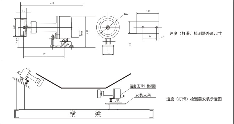 安裝調(diào)整:本產(chǎn)品安裝在下述要求并滿足現(xiàn)場(chǎng)使用條件安裝在帶式運(yùn)輸機(jī)上膠帶的下面,1.安裝后應(yīng)保證膠帶有料情況下使打滑檢測(cè)器與膠帶面平行,2.膠帶無(wú)料運(yùn)轉(zhuǎn)時(shí)檢測(cè)器觸輪與膠帶面應(yīng)可靠接觸,且安裝位置保證在振動(dòng)最小和膠帶抖動(dòng)最小的地方。 3,如需要加裝橫梁的安裝,橫梁必須焊接牢固。